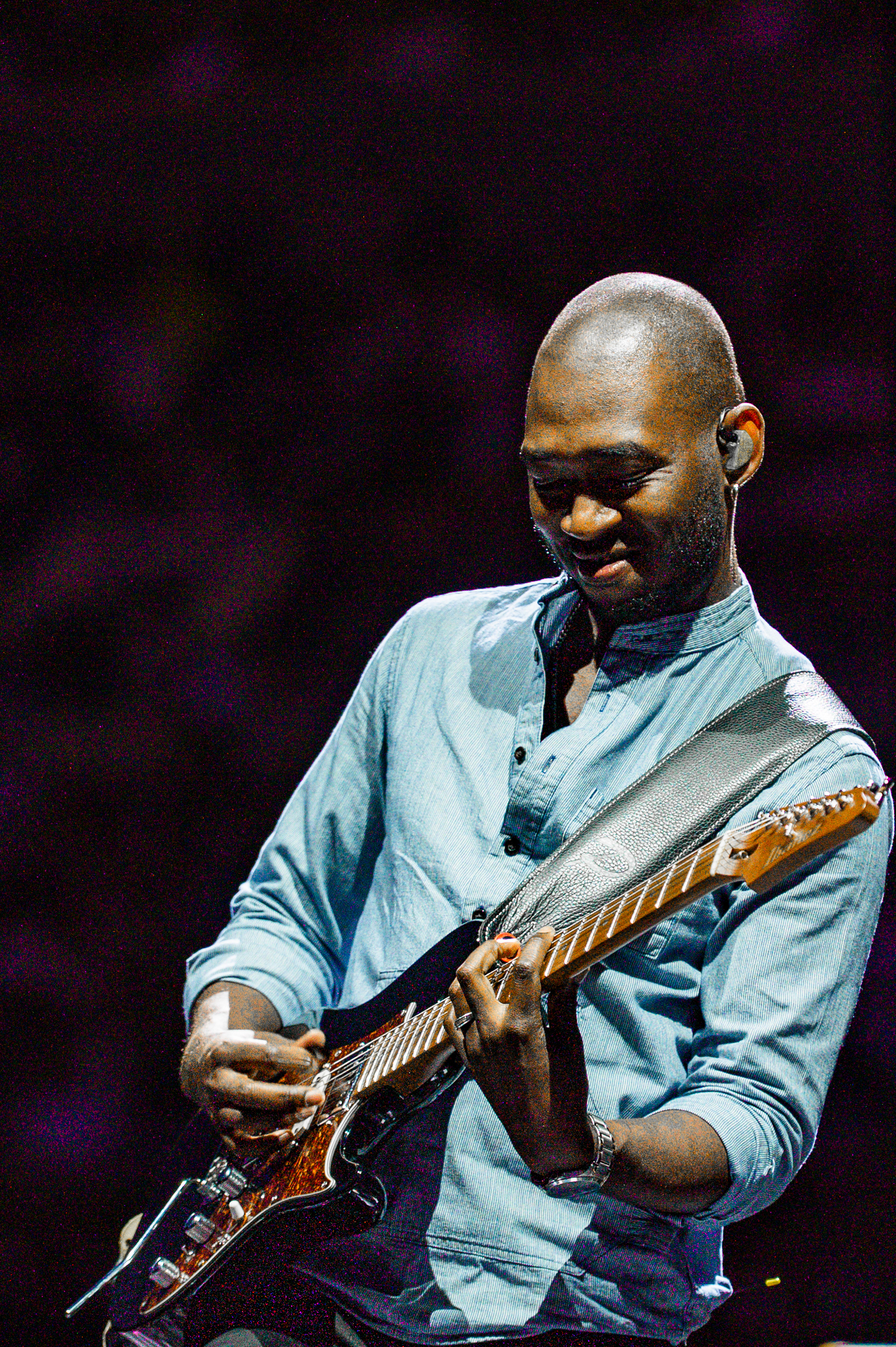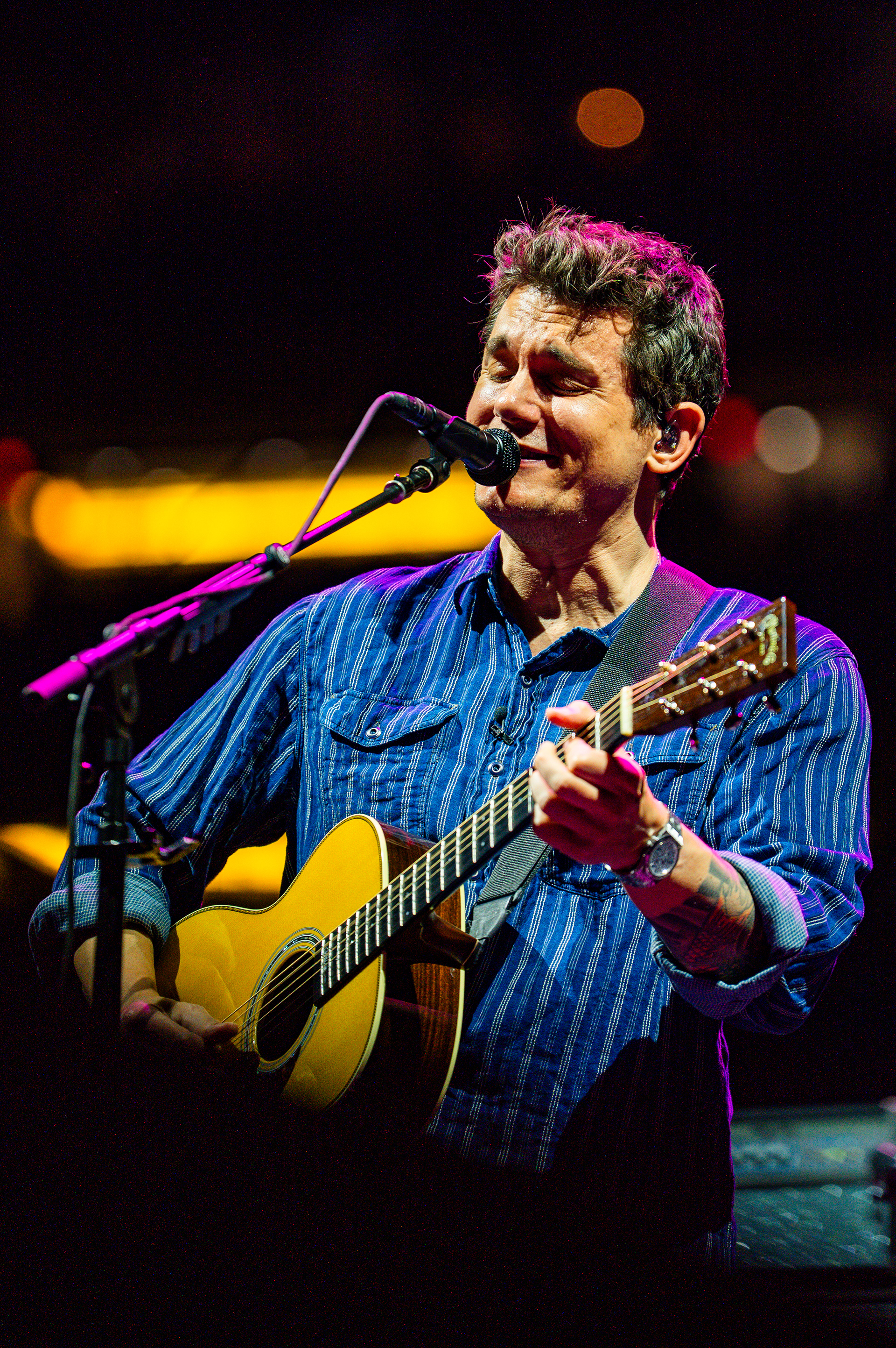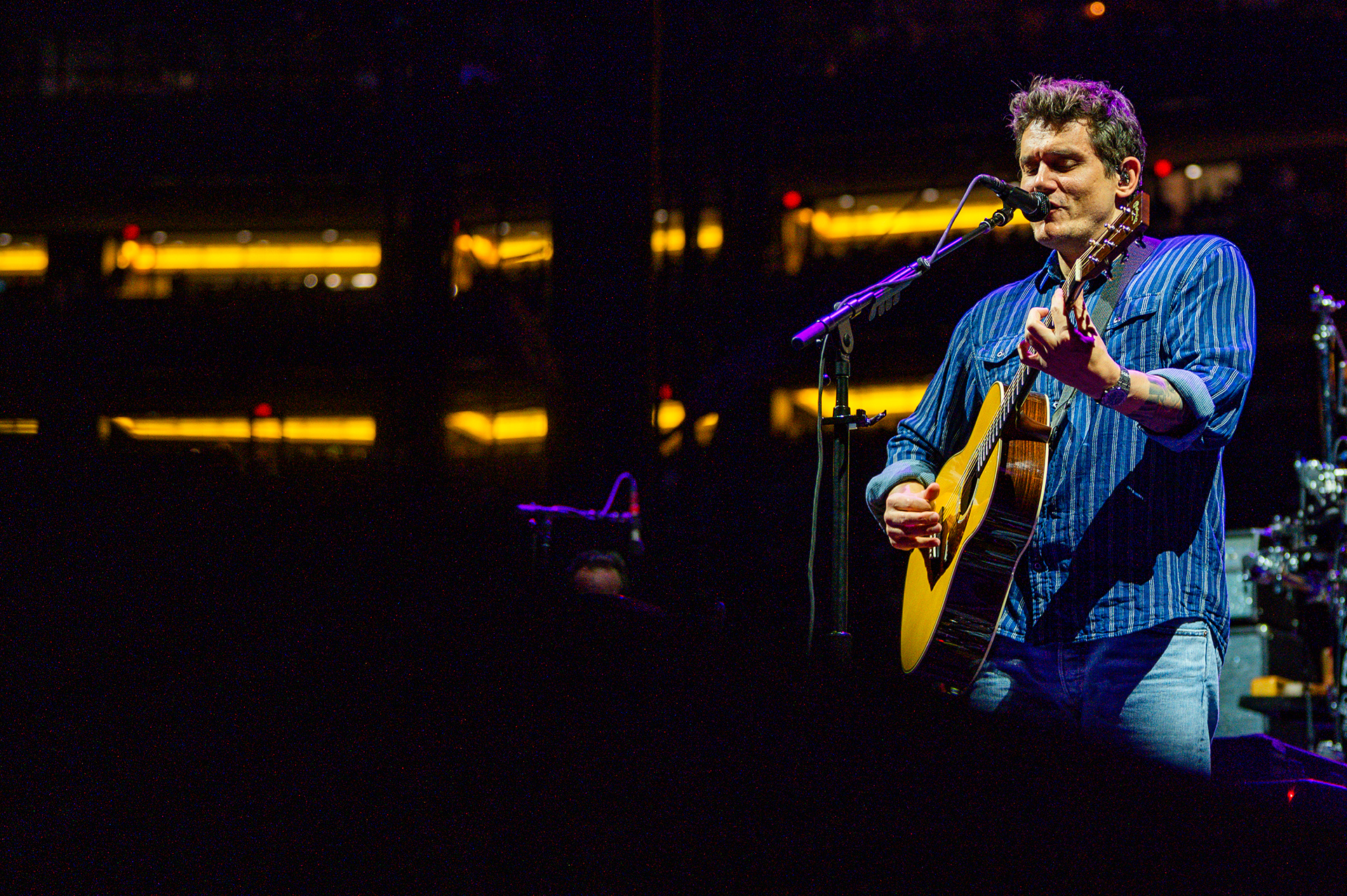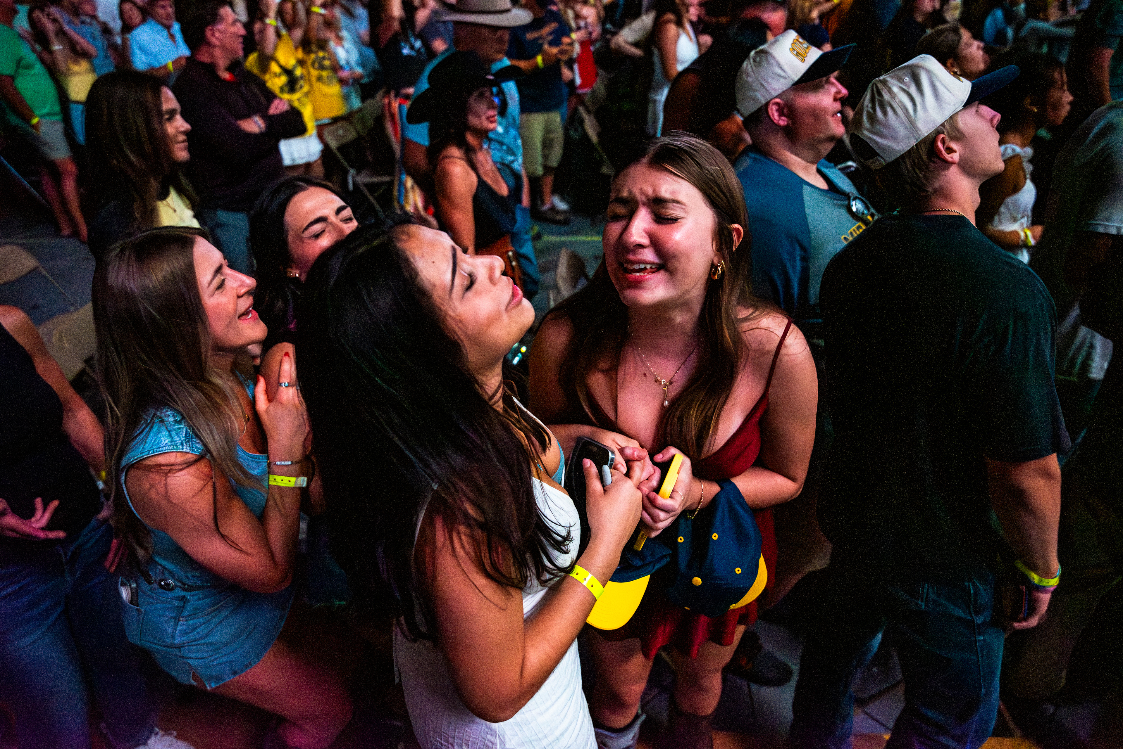 On September 27, 2025, Zach Bryan performed at Michigan Stadium in Ann Arbor before a record-setting crowd of 112,408, marking the largest ticketed concert by a single headliner in the United States. This was also the first major headline performance ever held at the Big House, giving the event both historic and cultural weight. The stage was designed in a circular configuration at midfield, with protective decking covering the turf and elaborate lighting rigs encircling the setup. Bryan was supported by a 16-piece band, and the scale of the production allowed photographers to capture perspectives ranging from sweeping stadium-wide views to intimate close-ups at stage level. The show unfolded with a dramatic shift in atmosphere, beginning with warm natural light and concluding under saturated stadium lighting that cast silhouettes and vivid color. Key moments, such as Bryan wearing a University of Michigan jersey and John Mayer’s appearance, anchored the spectacle. All images documented for The Michigan Daily.